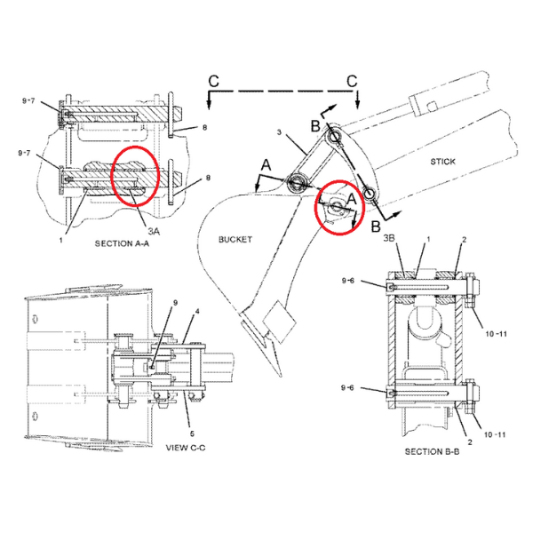 Bucșă pentru braț destinată mini-excavatoarelor Caterpillar 302.5 și 303,