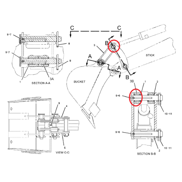 Bucșă pentru eclisă, destinată mini-excavatoarelor Caterpillar 302.5 și 303.