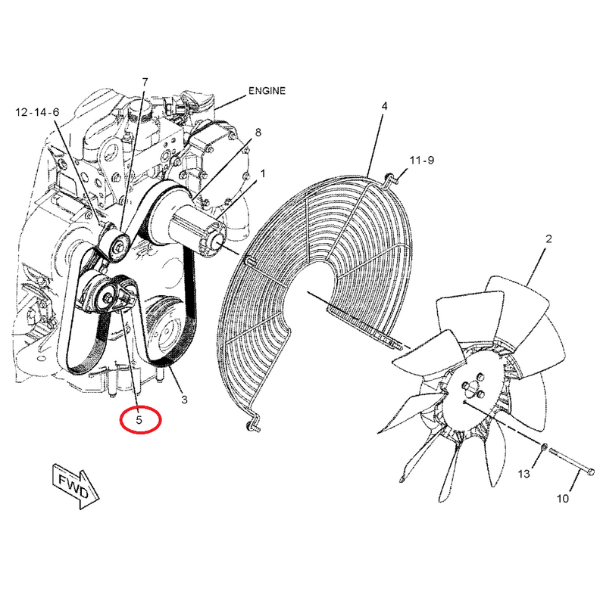 Curea accesorii Caterpillar – compatibilă cu o gamă extinsă de buldoexcavatoare din seriile 416E, 428E, 432E, 434E și altele. Această curea este proiectată să asigure transmisia eficientă a puterii către componentele auxiliare precum alternatorul, pompa de apă și compresorul de aer condiționat.