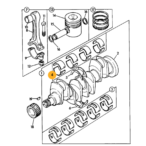 Cuzineti biela JCB 2CX, 3CX, 4C, 3D – motor Perkins AA, LD, LH