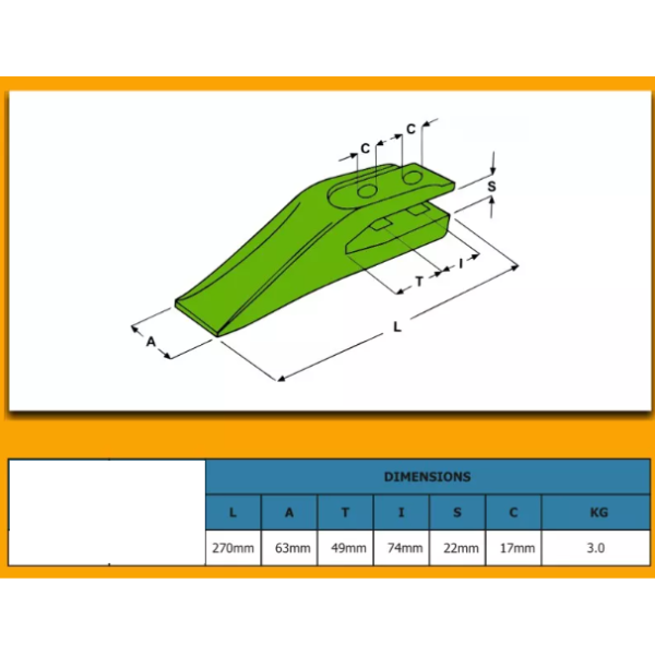 Dinte cupă buldoexcavator CASE 580ST, 580SV, 590ST, 590SV, 695ST, 695SV