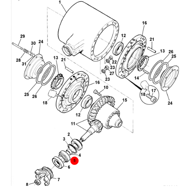 Asigură suportul pinionului conic și stabilitatea ansamblului diferențial, prevenind jocurile și uzura prematură.